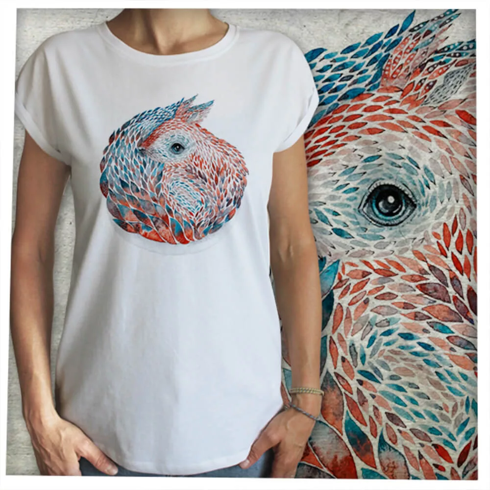 A grafikát a MELBA NŐI PÓLÓ típusunkon látod, ami méltán az egyik legnépszerűbb pólónk, hiszen iszonyú menő és kényelmes egyben, a feltűzött ujjaival, a szellősségével, a lazaságával. Az anyaga 100% pamut, oldalvarrott, a nyakvarrása keskeny, a nyakkivágása nagy, de nem mély, amitől a laza szabás ellenére mégis nőies is benne a viselője. Csodás póló!